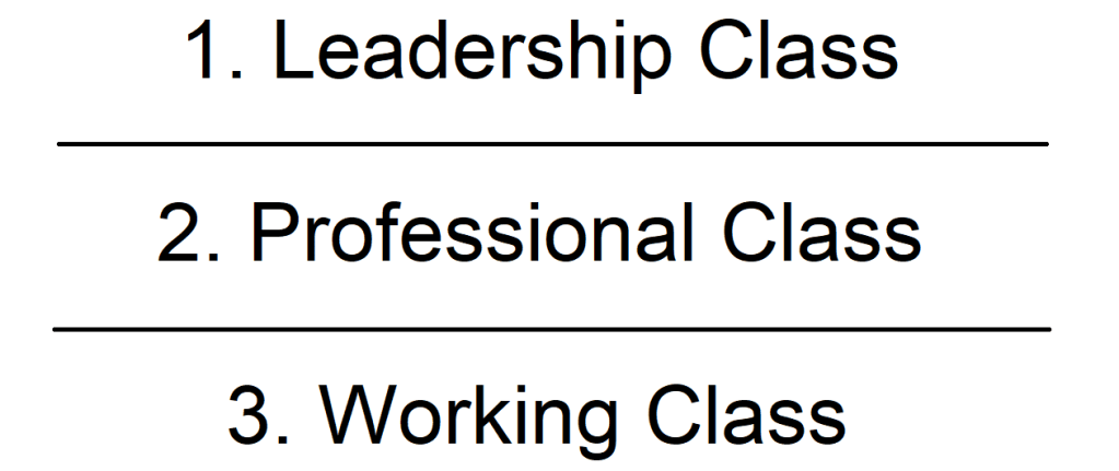 - The Working class depends on management from the professional class, just as the professional class depends on vision from the leadership class.