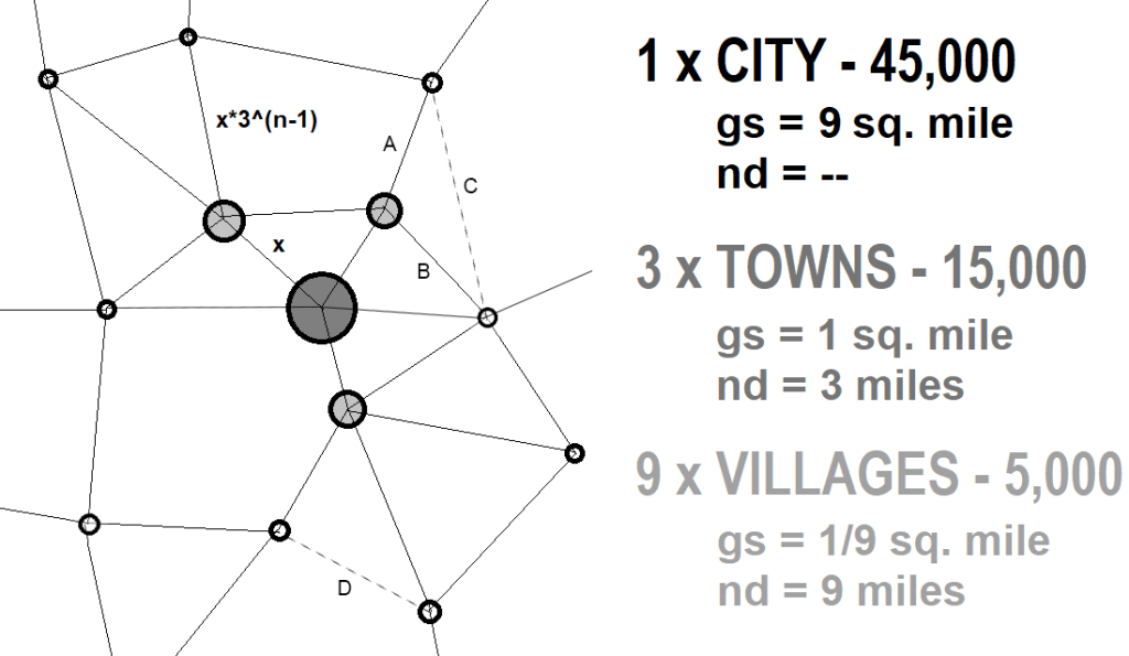 Populations naturally distribute according to what’s balanced. They form cities, towns, and villages. There are a few places with many people, and many places with a few people. It follows a power law distribution. The exponential function has a base of about 3.
