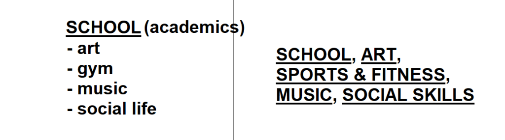 Standardized Testing: Standardized tests are useful for ability-sorting. A single test can’t measure everything, so we use multiple tests. Fitness tests don’t measure our overall worth as a person, but they’re useful for measuring physical ability. Intelligence receives outsized attention because “school” gets associated with academics, and everything else is considered a subset of that. We should legitimize all aspects of life by making them co-equal with school.