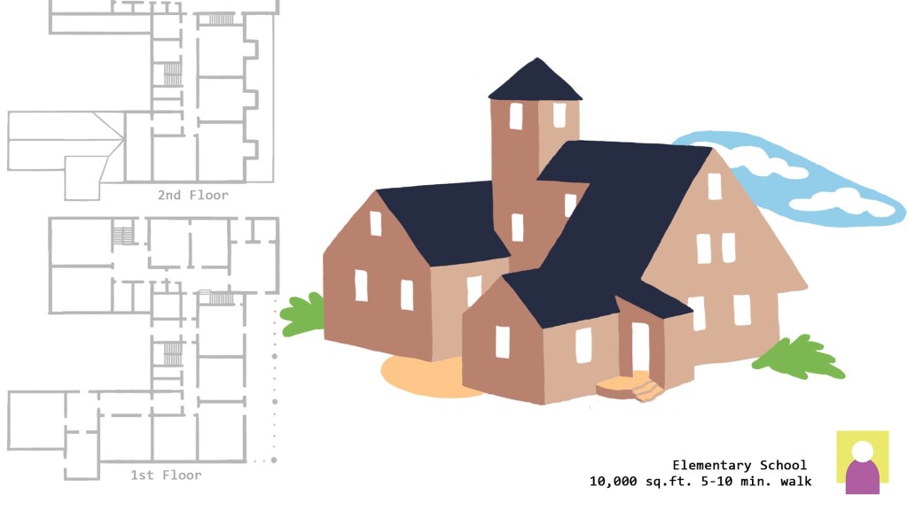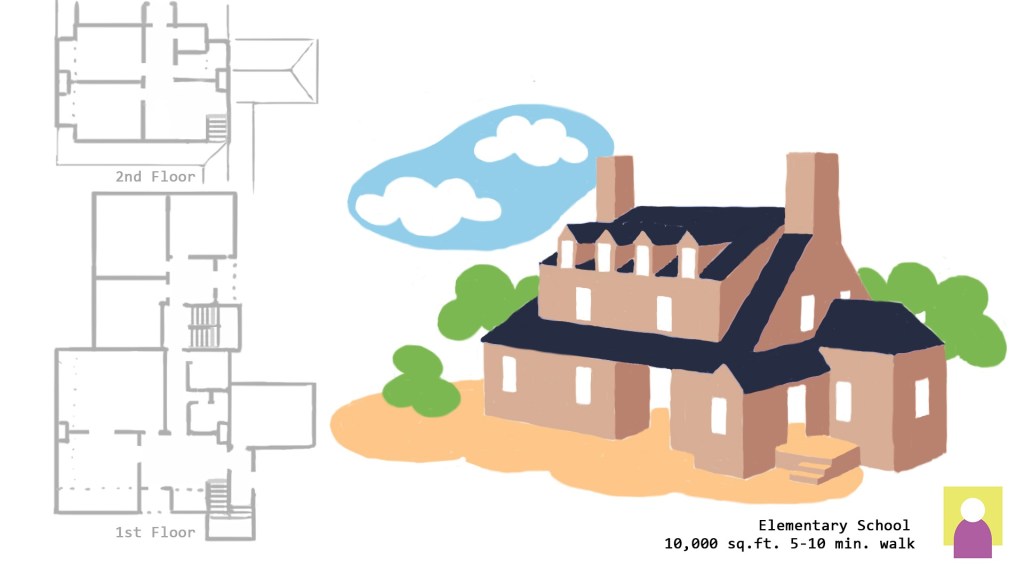 - The elementary school is the heart of the neighborhood. It is a 5-10 walk, and some students bike there. Most of its teachers are from the neighborhood.
