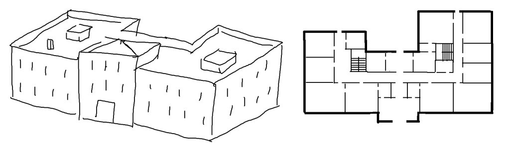 The Institutional building type has the scale of a school. It consists of multiple clusters on the same floor, which form the wings of the building. Each cluster has its own stairs, restrooms, support rooms, etc.