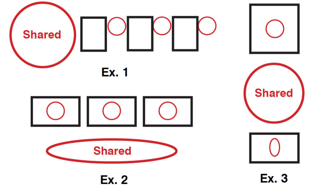 Shared amenities make up the commons. The shared space for each community doesn’t have to be in the center, but it should be accessible from the private spaces. It makes sense to locate campus buildings around a shared central quad, but depending on the circumstances, the shared space could be associated with a specific building, or located on a different site, as long as it’s within walking distance of the private spaces.